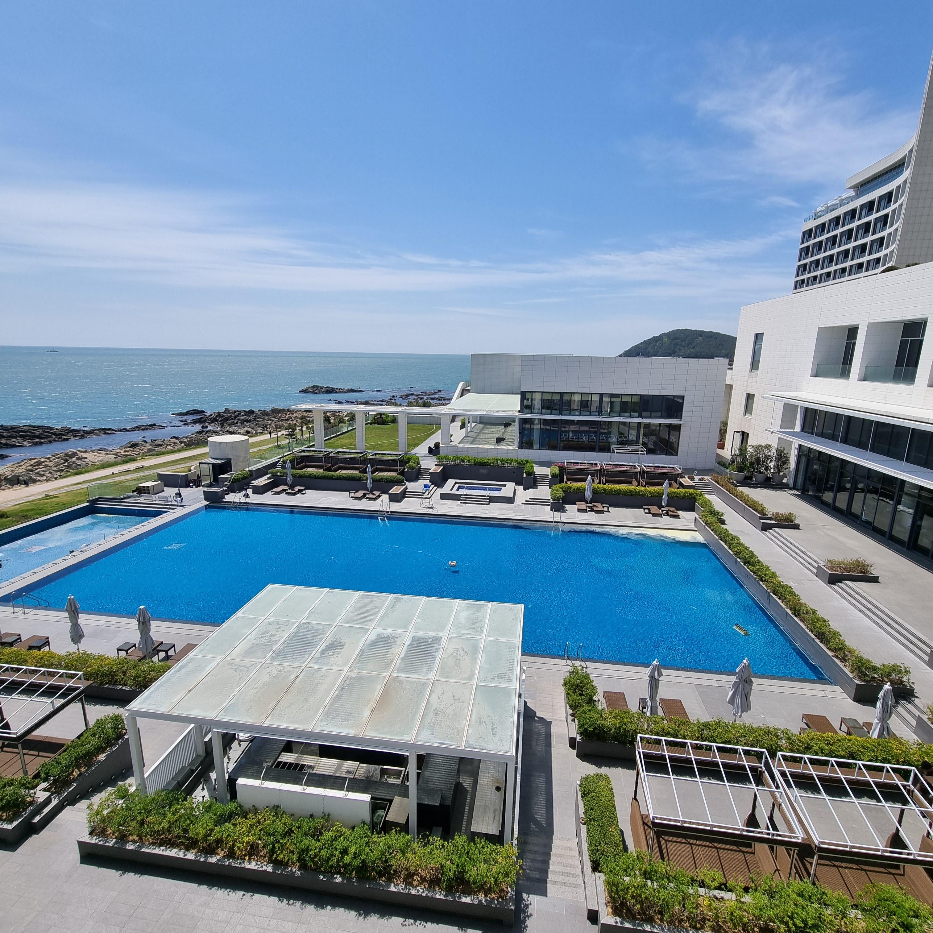 풀장은 비교적 한적했고, 무엇보다 수평선과 맞닿은 듯한 뷰가 인상적이었습니다. 수영을 즐기기보다 풍경을 감상하기에 완벽한 공간이었죠. 저녁에는 리조트 내에서 간단히 식사하고, 다시 바다를 보며 하루를 정리했어요.