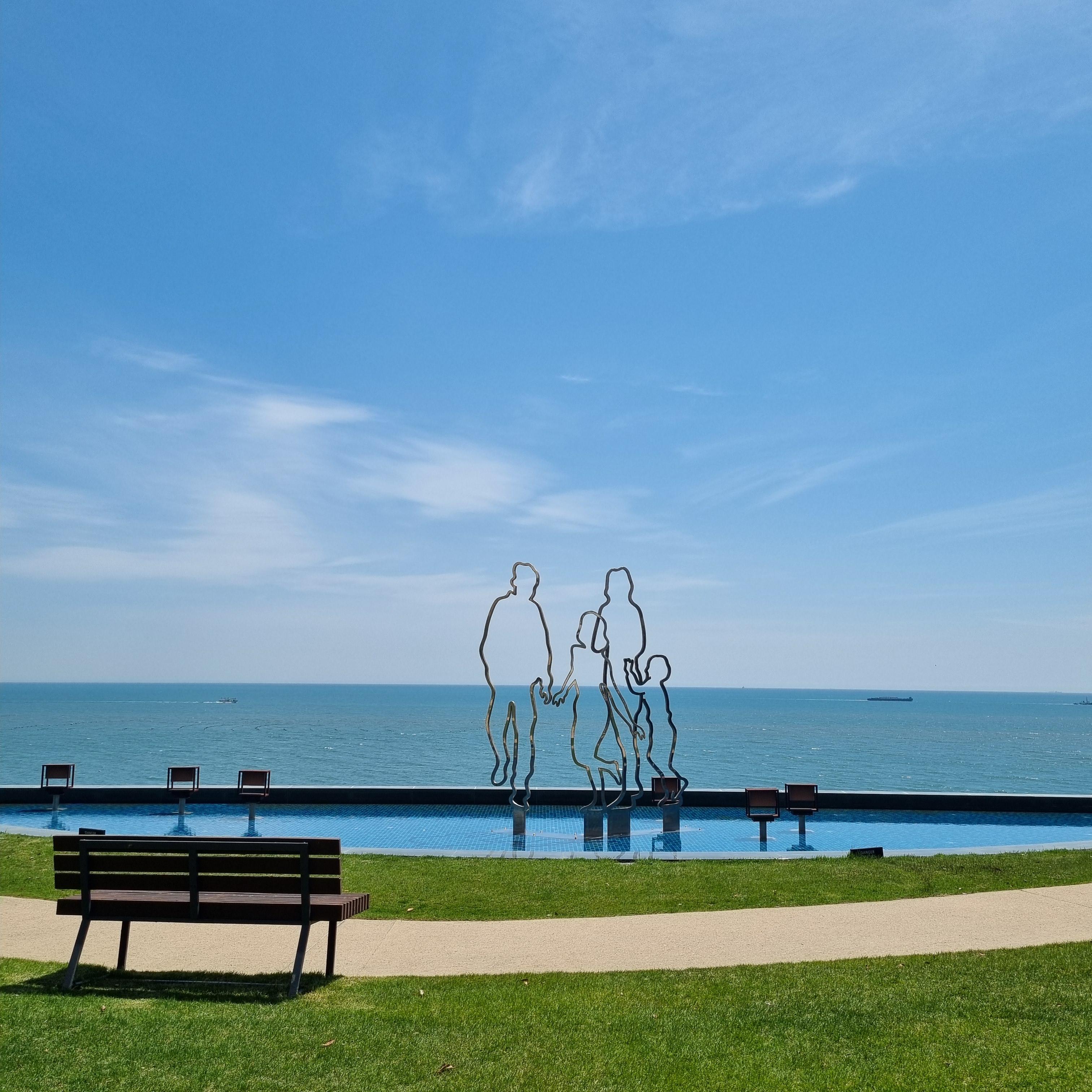 낮에는 리조트 내부를 천천히 산책했습니다. 건축미가 독특한 아난티 타워, 그 앞 정원과 산책길, 그리고 예술 작품처럼 세워진 가족 조형물까지… 이국적인 느낌마저 들더라고요. 사진 찍을 포인트도 많아서, 서로 사진을 찍어주며 여행의 순간을 남겼습니다. 중간중간 보이는 벤치에 앉아 바다를 바라보며 이야기 나누는 시간이 정말 낭만적이었어요.